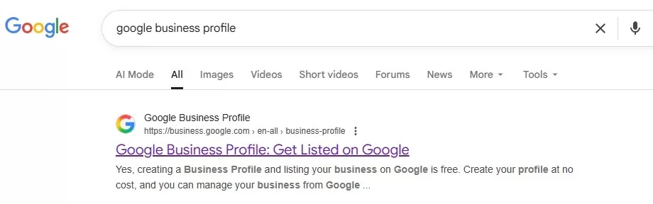 If you haven’t done this already, go to Google, search for google business profile and set up your business Profile.